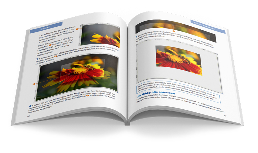 In 12 praxisnahen Kapiteln lernen Sie die Software von Grund auf kennen. Schwerpunkte bilden das Arbeiten mit Ebenen, die Nutzung der neuen Auswahlwerkzeuge sowie das Anwenden komplexer Filter.