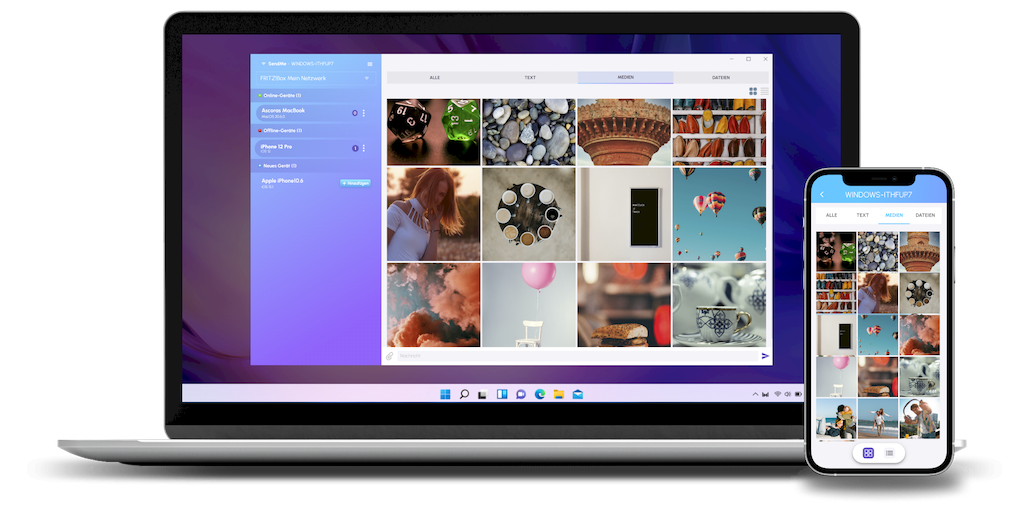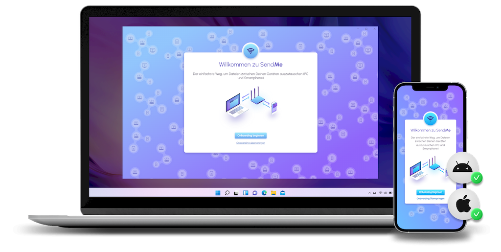 SendMe ermöglicht eine nahtlose Verbindung zwischen Windows, Android und iOS. Der Austausch von Dateien erfolgt zuverlässig, schnell und unabhängig vom verwendeten Betriebssystem.