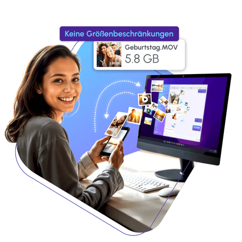 Unterstützung großer Dateien – z. B. umfangreiche Fotoalben oder 4K-Videos – ohne Größenbeschränkung, wie sie bei vielen Cloud-Diensten vorhanden ist.